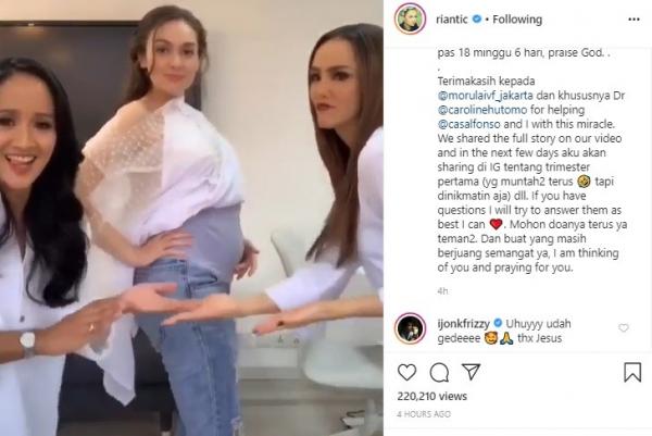 Dalam video tersebut, Rianti memamerkan perutnya yang mulai membuncit. Melengkapi unggahannya, istri Cassanova Alfonso itu membagikan kabar bahagia tersebut.