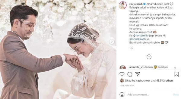 Di hari bahagia tersebut, keduanya mendapatkan pesan manis dari adik Ririn, Rini Yulianti. Dia mengaku turut bahagia menyaksikan sang kakak yang kini sah menjadi istri Ibnu Jamil.