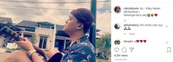 Tak hanya itu, hari ini Rizky Febian juga mengunggah videonya sedang bernyanyi tentang ibu. Pria yang akrab disapa Iky ini juga memainkan gitarnya di pinggir jalan, di tengah cuaca mendung dan angin yang bertiup kencang.