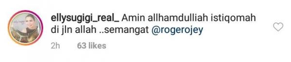 Kabar Roger menjadi mualaf, ternyata diketahui oleh Elly Sugigi. Dia mempostingkan komen di sebuah akun Instagram gosip yang mengunggah video Roger bersyahadat.