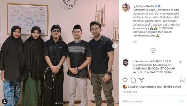 "Assalamualaikum.. Alhamdulillah di hari ulang tahun Dut, Dut mau membuka lembaran baru. Alhamdulillah Dut sudah memeluk agama Islam. Dut sangat bahagia sekali, doakan Dut istiqomah ya semuanya, 29/10/2020 terimakasih @gusmiftah sudah membimbing aku," tulis DJ Butterfly seperti dikutip iNews.id pada Kamis (29/10/2020).