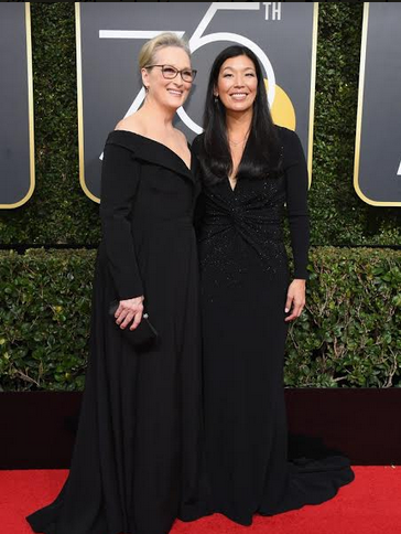 Aktris The Devil Wears Prada Meryl Streep tampil di atas karpet merah mengenakan gaun panjang hitam, polos, tanpa kerlap-kerlip mewah. Ia tampil sederhana tanpa aksesoris selain anting dan kacamata. Tak tampil sendiri, Streep juga membawa tamu spesial bernama Ai-jen Poo, direktur National Domestic Workers Alliance dan co-director dari Caring Across Generations Campaign.