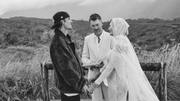 Terlihat seorang pendeta yang berdiri di tengah-tengah Justin dan Hailey yang sedang saling berhadapan dan berpegangan tangan. Dalam foto yang lain, Justin tampak memegang kamera sambil memfotokan Hailey yang sedang berpose sembari memamerkan perut buncitnya.