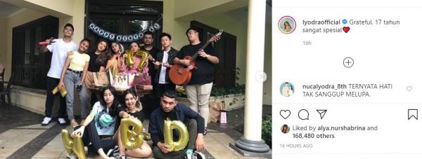“Grateful. 17 tahun sangat spesial,” tulis Lyodra.