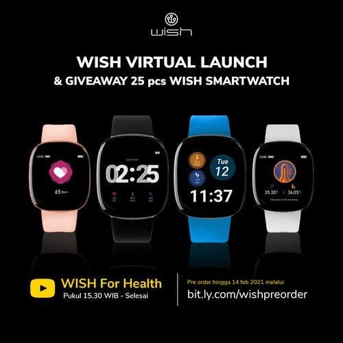 Namun untuk yang ingin berkesempatan mendapatkan smartwatch seharga 3.250.000 ini dengan cuma-cuma, bisa mengikuti giveaway di berbagai platform sosial media WISH dengan total 25 pcs WISH Smartwatch.