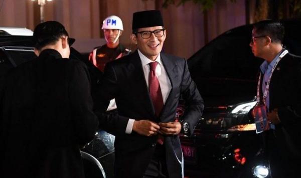 Sementara itu, Sandiaga mengenakan setelan jas lengkap. Didampingi sang istri, Nur Asia, Sandiaga menggunakan baju warna putih, celana, jas warna hitam, peci hitam dan dasi merah.