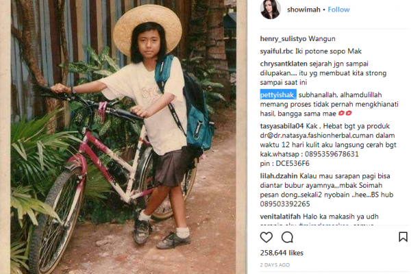 “Semua punya kenangan dimasa kecil mbak @showimah dan itu akan selalu terkenang sepanjang hidup menjadi penyemangat masa depan. Tetap bahagia selalu mbak,” tulis @rettyaisyahs.