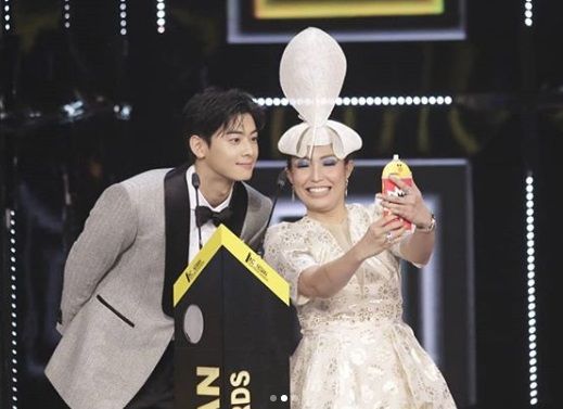 Di acara penghargaan tersebut, Eun Woo dan Ayu Dewi berpasangan untuk membacakan pemenang nominasi dari kategori Artis Terpopuler versi