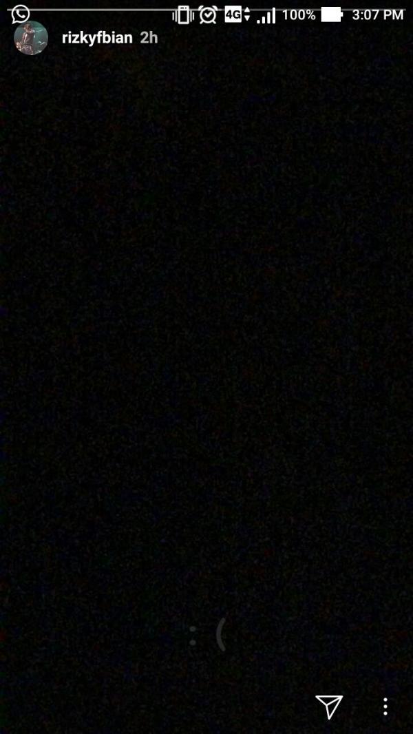 Namun sekitar sejam lalu, Rizky Febian mem-posting sesuatu di Insta Story. Putra dari pasangan Sule dan Lina ini mem-posting gambar hitam tanpa ada suara atau tulisan, hanya emote sedih selama beberapa menit.