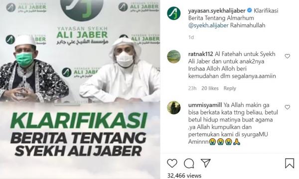 “Saya Syekh Muhammad Jaber atas nama keluarga besar almarhum Syekh Ali Jaber ingin menyampaikan khususnya berita yang sudah viral di sosial media mengenai Villa Marseillia di Puncak, Bogor milik Syekh Ali Jaber. Saya ingin menyampaikan bahwa Syekh Ali Jaber tidak memiliki villa tersebut, bahkan beliau tidak memiliki satu persen pun dari Villa tersebut,” kata Syekh Muhamamad Jaber dalam video yang diunggah di Instagram, dikutip Minggu (24/1/2021).
