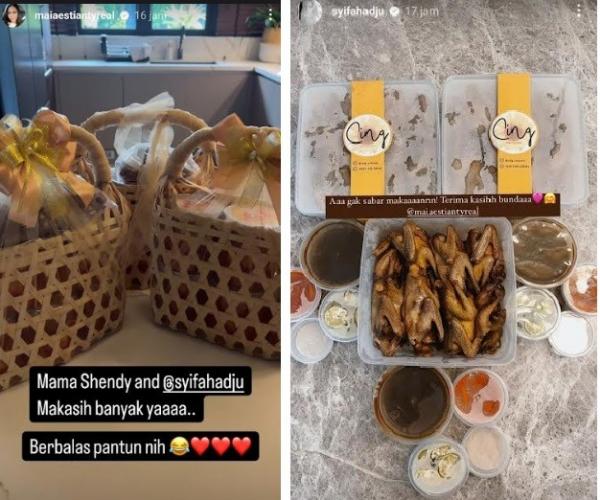 Selang beberapa waktu, Maia mendapatkan kiriman balik dari ibunda Syifa Hadju. Terlihat ada tiga buah keranjang yang dihiasi dengan manis. Maia mengungkap rasa terima kasihnya kepada ibunda Syifa Hadju.