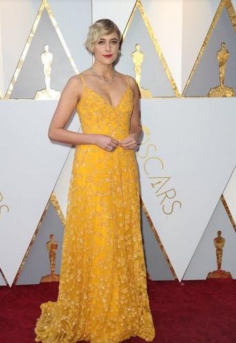 Greta Gerwig merupakan sutradara Lady Bird yang dinominasikan sebagai sutradara terbaik dan filmnya dinominasikan sebagai Film Terbaik menyaingi Get Out, film yang diperankan Daniel Kaluuya. Di red carpet, Greta mengenakan gaun kuning cerah sederhana dan riasan bibir merah merona, membuatnya mirip salah satu penyanyi dunia terkenal, Lady Gaga?