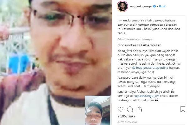 Rasa terharu dicurahkan oleh Enda di Instagram pribadinya usai video call. Dia memberikan doa kepada Pasha dan keluarga, serta warga Palu yang tengah menghadapi bencana.