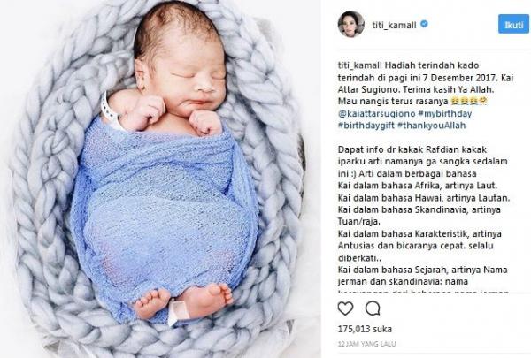 “Alhamdulillah perjalanan ke rumah sakit lancar, dan Kai lahir dengan selamat, berkah tak terkira,” tulis Titi di akun Instagram @titi_kamall, seperti dikutip iNews.id, di Jakarta, Kamis (7/12/2017).