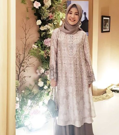 Nah, jika Anda ingin tampil sederhana, tidak ingin ribet, tetapi tetap tampak anggun dan glamor, Anda bisa mengenakan gamis dengan aksen manik-manik dan ragam corak yang dipadankan dengan kerudung polos nan simpel seperti Natasha Rizky ini. Anda tertarik?