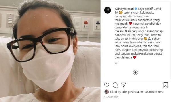 Dalam unggahannya di Instagram pada Rabu 15 April 2020, Twindy mengabarkan bahwa dirinya positif kena Covid-19.