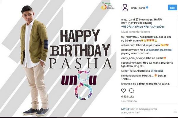 Kabar tersebut pertama kali diunggah melalui akun Instagram resmi grup band Ungu. “27 November: [HAPPY BIRTHDAY PASHA UNGU],” tulis akun Instagram resmi grup Band Ungu @ungu_band, seperti dikutip iNews.id, di Jakarta, Senin (27/11/2017).