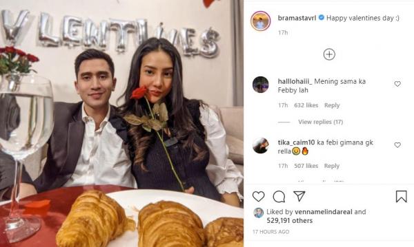 Mulai dari bunga mawar merah, balon berbentuk hati, dan balon bertuliskan ‘Valentine’. Keduanya juga mengenakan busana yang serasi. “Happy val’s day,” tulis selebgram dengan delapan juta followers tersebut.