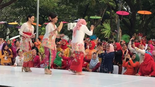 Angela tampak sesekali menyapa para penonton yang hadir memberikan apresiasi. Penampilan mereka di runway diiringi alunan musik Krontjong Toegoe. Selain Angela dan menteri wanita lainnya, tampak juga OASE Kabinet Indonesia Maju, istri Dubes dan Dubes perempuan, Komunitas Perempuan Berkebaya Indonesia, Sixers 395 hingga None Jakarta yang turut melenggang di atas runway.