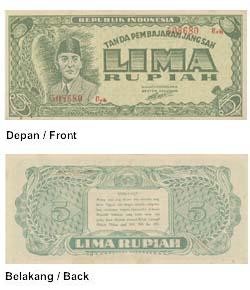 Saat itu, mata uang yang berlaku di masyarakat yaitu uang Hindia Belanda (De Javasche Bank), dan uang Jepang. Pada 1 Oktober 1945, pemerintah Indonesia resmi mengeluarkan mata uang rupiah yang dikenal dengan sebutan Oeang Republik Indonesia (ORI).