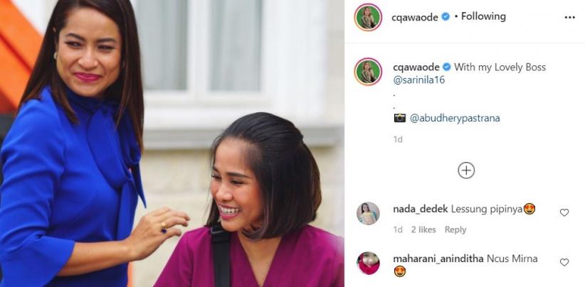 Dalam postingan itu, tampak Chika Waode berfoto bersama Sari Nila, pemeran Mama Rossa atau ibunda dari Aldebaran dan Roy.