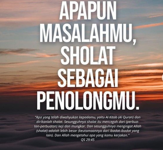 “Ketika kita sedang dirundung masalah maka hamparkanlah sajadahmu, bersujud kepada Allah. Karena sesungguhnya sholat adalah penolong dalam kehidupan kita. Saking pentingnya sholat dalam menyelesaikan masalah kita. Sampai ketika berperang-pun sholat masih harus tetap dilaksanakan. Makanya kita kenal adanya sholat khauf.