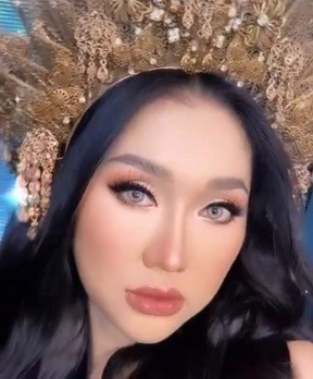 3. Penampakan Lucinta pakai mahkota Miss Uniperes
