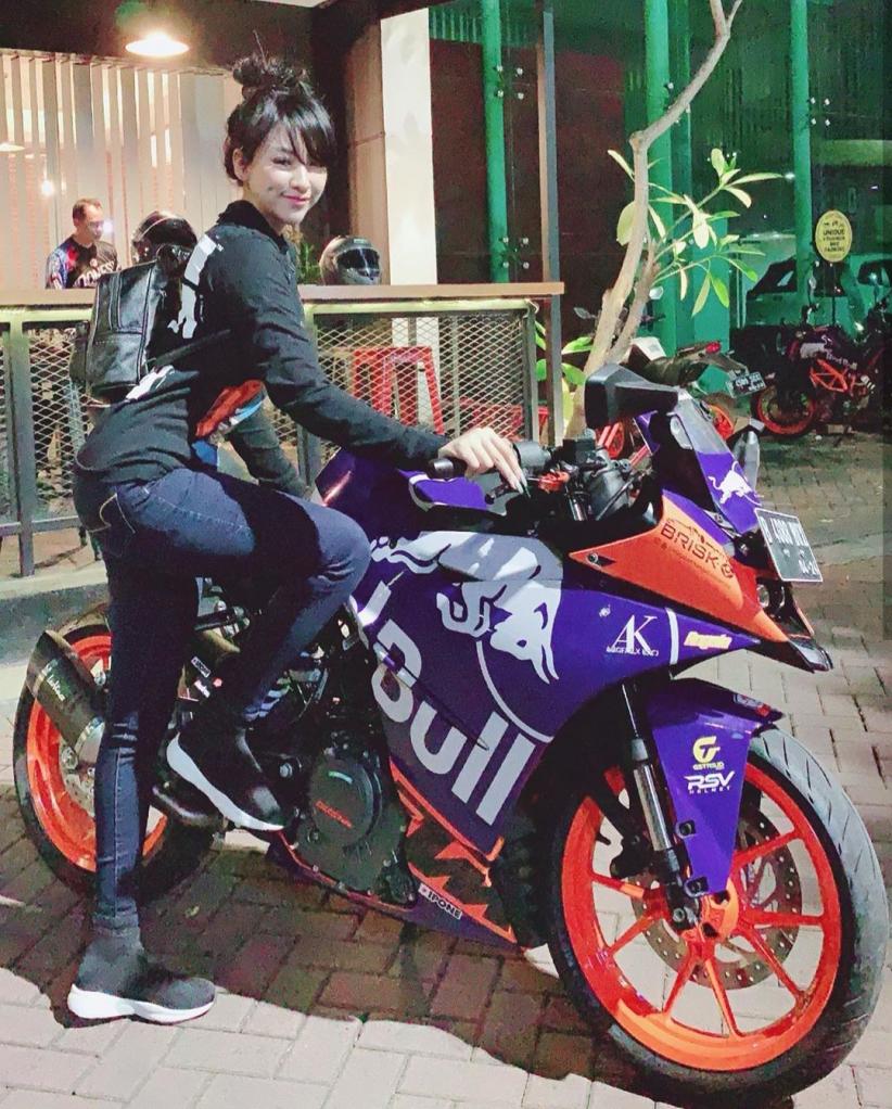 Lady biker kali ini datang dari dalam negeri bernama Angela Lorenza. Dilihat dari sejumlah postingan Instagram pribadinya, Angel sering berpose di atas moge seperti MV Agusta, KTM RC250, KTM Duke 250, Honda CBR dan Royal Enfield Classic 500.