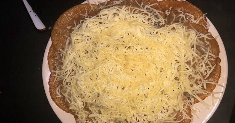 6. Untuk toping, setelah adonan tersusun (sesuai selera) taburkan dengan parutan keju, lalu tuangkan kental manis pada bagian atas dari kue cucur dan parutan keju. Bagi yang tidak menyukai keju, kue cucur sudah nikmat untuk dinikmati tanpa toping, atau toping dapat diganti sesuai dengan keinginan.