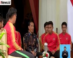 JAKARTA, iNews.id - Usai kemenangan kejuaraan Piala AFF U-22 2019, Timnas U-22 diarak dari Stadion Gelora Bung Karno (GBK) sebelum bertemu Presiden Joko Widodo (Jokowi) di Istana Negara. Para pemain Timnas U-22 disambut Presiden Joko Widodo (Jokowi) di Istana Negara.
