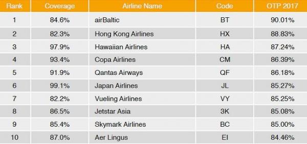 Lembaga konsultan penerbangan OAG merilis data terbaru tentang kinerja ketepatan waktu (on-time performance/OTP) maskapai penerbangan di seluruh dunia. Dalam laporan bertajuk OAG Punctuality League 2018 itu, airBaltic asal Latvia dinobatkan sebagai maskapai paling tepat waktu di dunia.