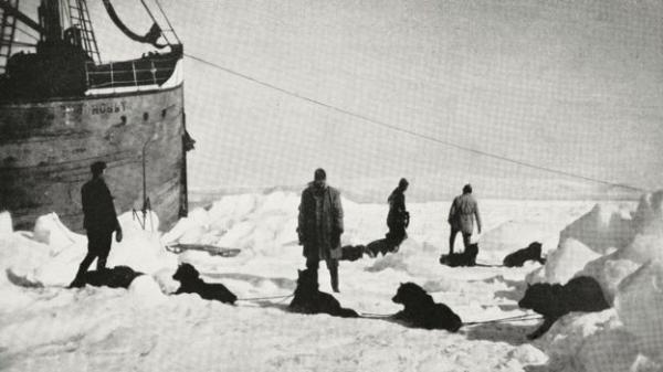 Roald Amundsen (tengah) dalam sebuah penjelajahan bersama anak buahnya di pulau Spitsbergen, Norwegia. (Foto: DPA/Getty Images)