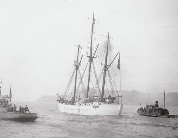 Kapal Maud saat baru saja meninggalkan pelabuhan Seattle untuk menuju pelayaran ke Kutub. (Foto: Getty Images)