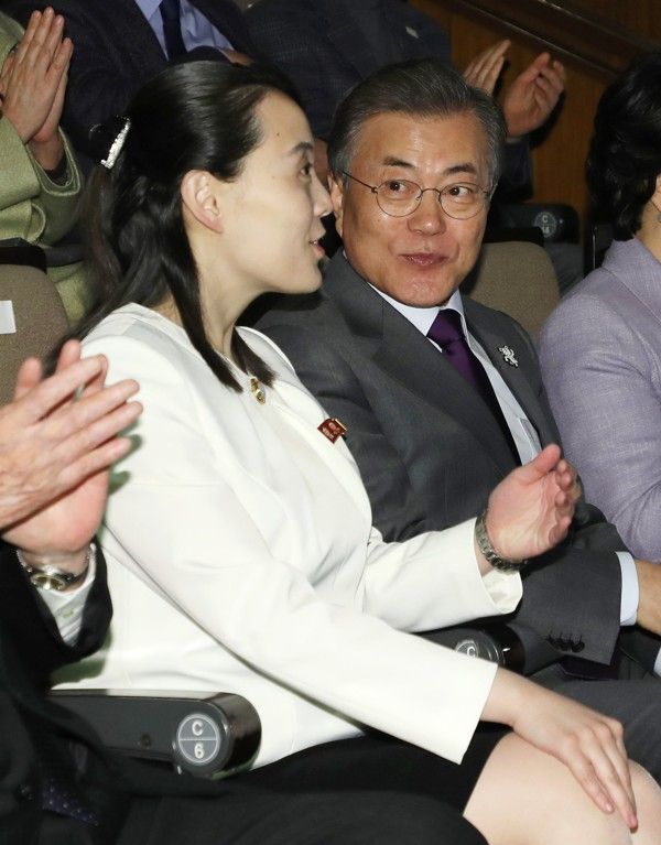 Dari foto yang beredar, Yo Jong duduk di antara Moon dan ketua tim delegasi olimpiade sekaligus Presidium Majelis Rakyat Korut Kim Yong Nam. Mereka bertepuk tangan bersama saat menonton konser orkestra Samijon, Minggu 11 Februari malam.