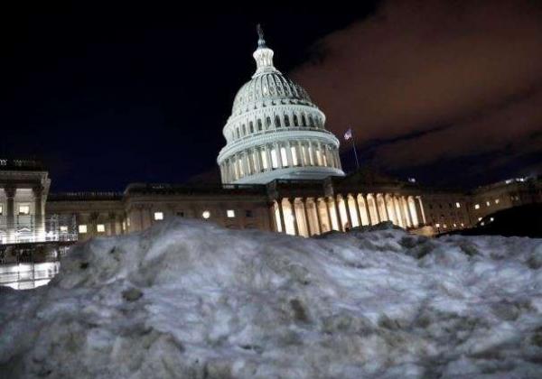 Gedung Capitol tampak dari balik tumpukan salju di Washington, 16 Januari 2019. (Foto: Reuters)