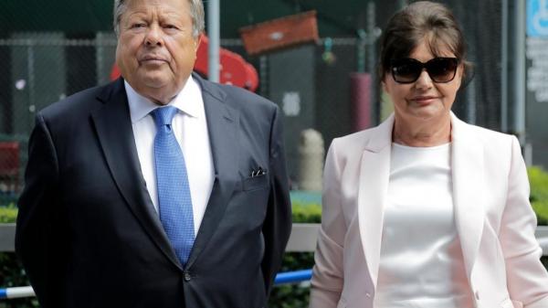 Viktor dan Amalija mengenakan setelan jas dan kacamata hitam saat memasuki Plasa Federal di Manhattan pada Kamis pagi. Keduanya diapit oleh pengacara dan polisi federal.