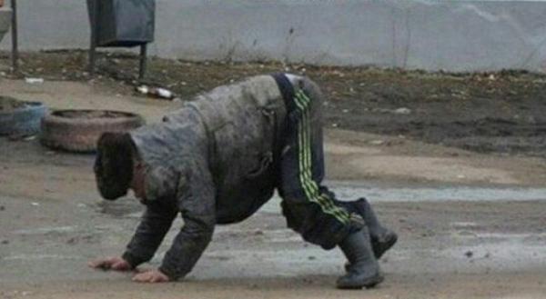 Warganet lain memposting gambar seorang lelaki mabuk dengan empat kaki menyerupai Cheetah, disertai keterangan, "Kalashnikov untuk pertama kalinya membuat versi manusia dari robot Igorek".
