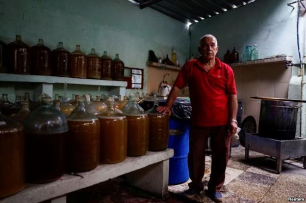 Orestes Estevez memperlihatkan produksi minuman anggur di rumahnya di Havana, Kuba. (Foto: Reuters)