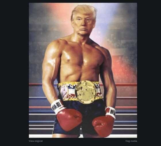 Tentu saja itu foto hasil editan, yakni kepala Trump menggunakan tubuh karakter Rocky di film 'Rocky III' yang diperankan Sylvester Stallone.