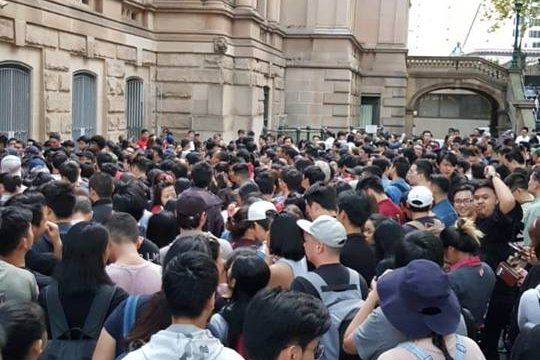 Pemilih mengantre di depan Sydney Town Hall yang menjadi salah satu tempat mencoblos di Sydney, sejak Sabtu pagi (13/4). (Foto: doc. Facebook/Esther Suhardi)