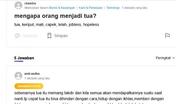 Seorang pengguna pernah mengajukan pertanyaan tersebut 9 tahun lalu. Menurut dia, tua itu identik dengan kulit keriput, dekat dengan kematian, dan bahkan kehilangan harapan. Seram juga, ya?