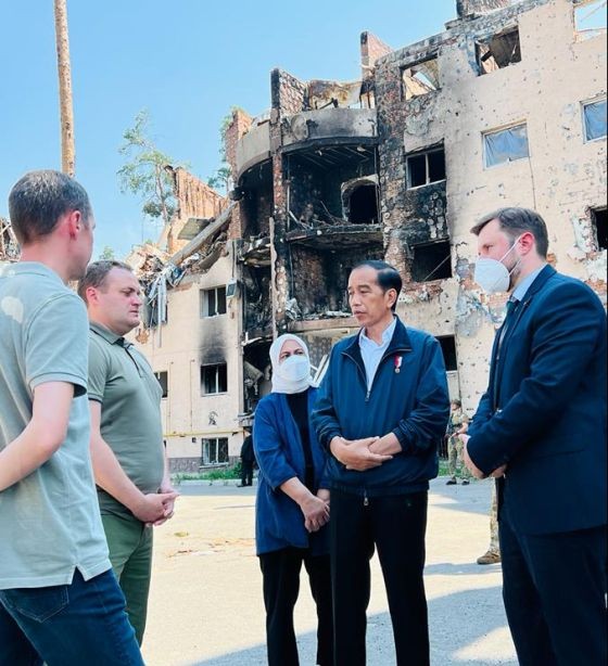“Saya melihat kerusakan yang terjadi di Kota Irpin akibat perang dan sangat menyedihkan sekali banyak rumah-rumah yang rusak kemudian juga infrastruktur yang rusak,” ujar Jokowi.