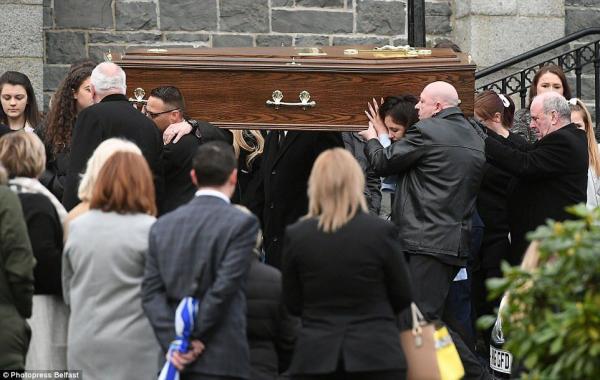 COUNTY DOWN, iNews.id - Kisah pilu dialami Charlotte (21) lantaran ibunya meninggal di hari Natal 2017. Berusaha tegar, Charlotte ikut membopong peti mati sang ibu, Jayne Reat (43), menuju ke Gereja St. Patrick, hingga ke tempat pemakaman.