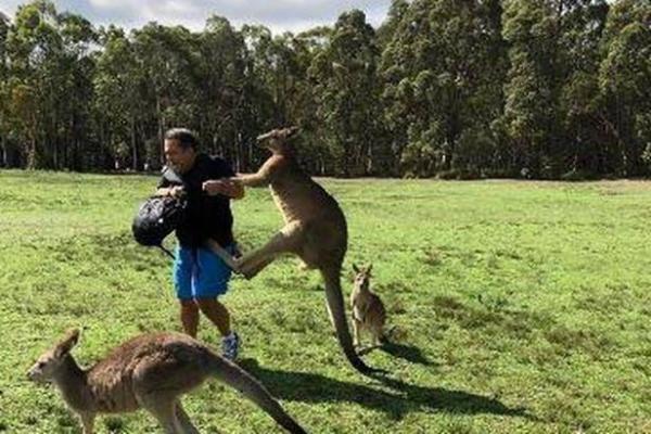 Seorang pria tampak diserang kanguru. (Foto: Australia Plus ABC)