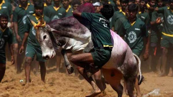 Selama festival Jallikattu yang diadakan di Tamil Nadu itu, banteng-banteng dihiasi dengan kalung bunga dan dilepaskan dari kandang mereka. Lalu para peserta festival berusaha untuk menaklukkan banteng dengan memegang tanduknya kuat-kuat.