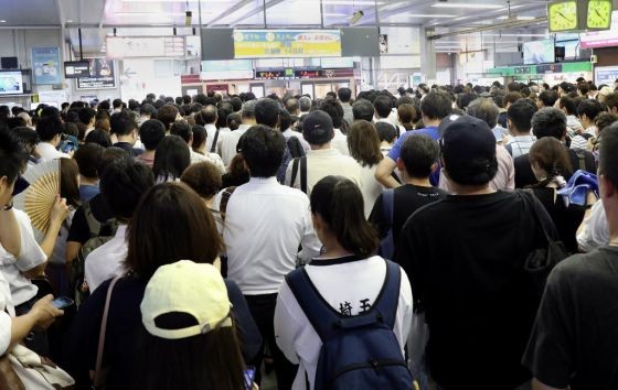 (Antrean di stasiun akibat Topan Faxai/AFP)