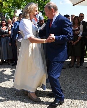 Putin merupakan salah satu dari sekelompok kecil tamu dalam acara pernikahan Menteri Luar Negeri Karin Kneissl yang berlangsung pada Sabtu (18/8/2018). Pernikahan digelar di sebuah desa anggur di Austria tenggara.
