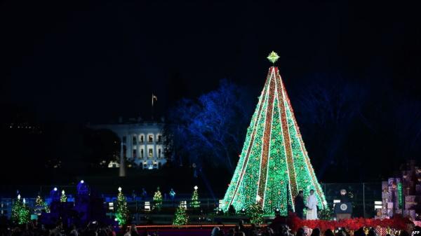 Presiden AS Donald Trump dan Ibu Negara Melania Trump menyalakan Pohon Natal Nasional di National Mall, Washington, AS, 28 November 2018. (Foto: Brendan Smialowski/AFP)