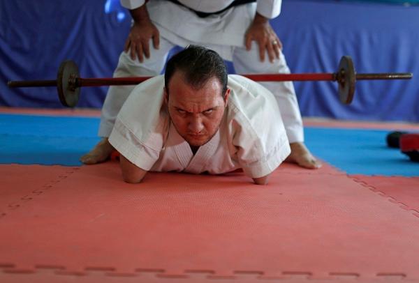 Inspiratif! Pria Palestina Unjuk Kemahiran Karate walau Tanpa Kaki dan Tangan
