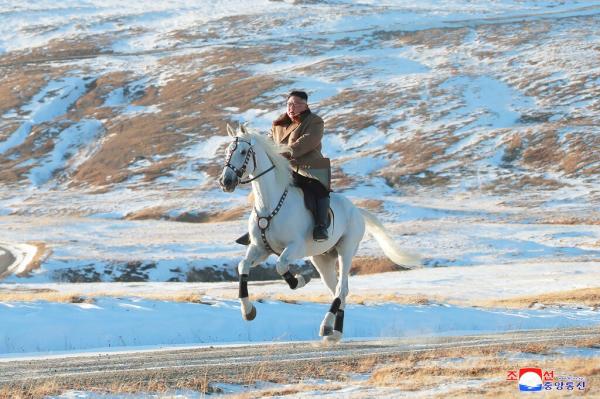 Foto-foto yang dirilis media resmi Korut menunjukkan, Kim menunggang kuda putih saat mendaki Gunung Paektu yang tertutup salju. Lokasi dan hewan yang dipilihnya merupakan simbol yang terkait dengan dinasti keluarga Kim, isyarat dirinya akan mengambil keputusan besar dalam waktu dekat.